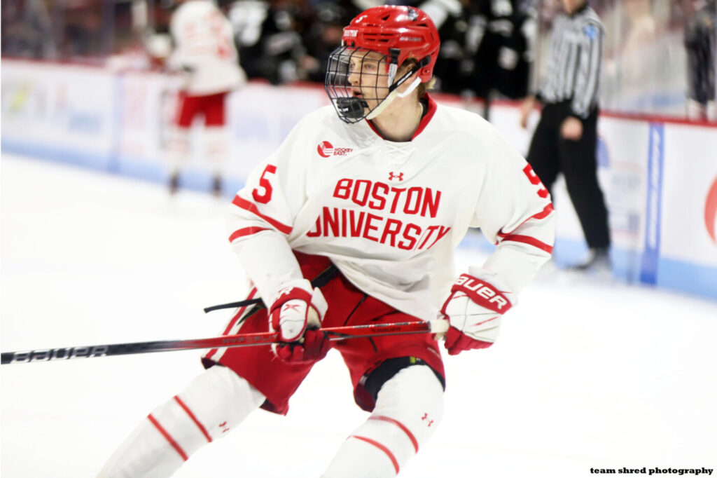 Boston University Terriers‘ Swedish-born, sophomore defenseman Tom Willander(5) decides to sign his 3-year NHL entry level deal as offered by his draft team, Vancouver Canucks (1st round, 2023, #11 overall) for 2025/2026.