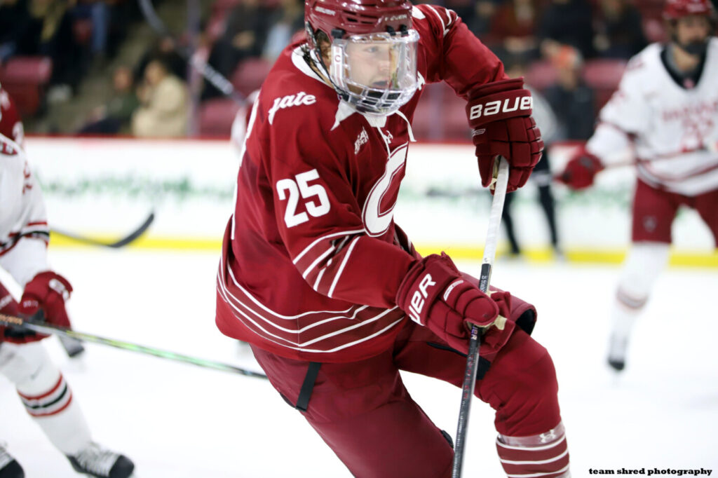 Colgate University Raiders‘ senior defenseman Tommy Bergsland(25) signs a 1st pro deal, an ato to join Texas Stars for their AHL playoff run.