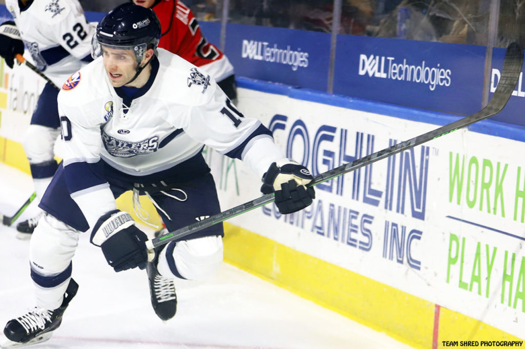 2nd year Bridgeport Islanders‘ defenseman Trevor Cosgrove(42) re-signs for 2023/2024, despite only playing 9 AHL games last season.