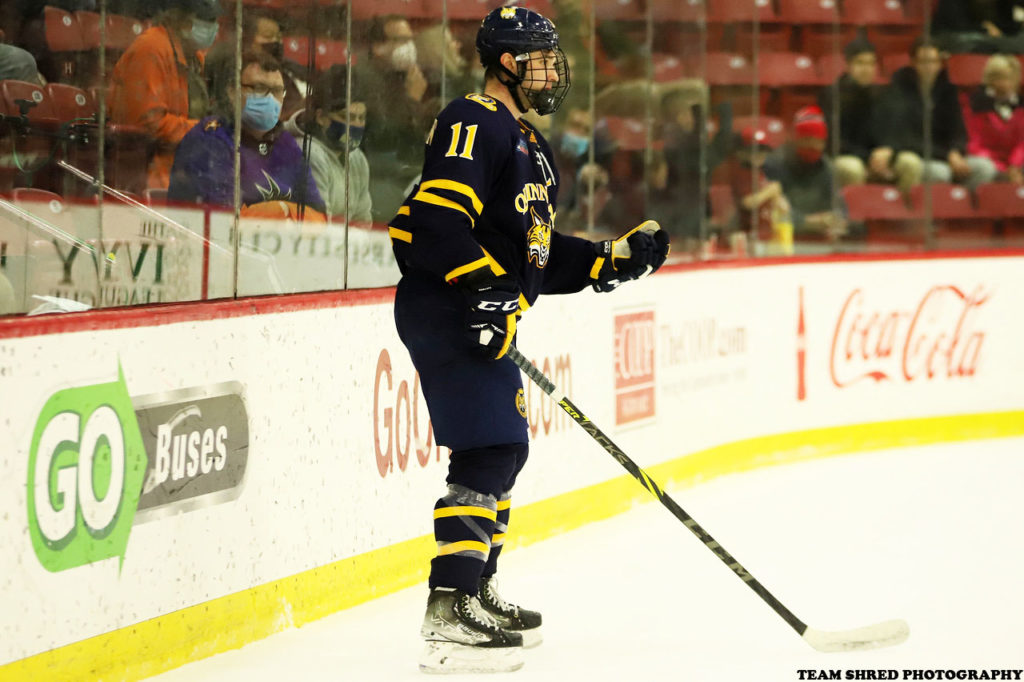 Quinnipiac University Bobcats‘ graduating senior, captain center Wyatt Bongiovanni(5) had a college career year scoring next bests 16 goals and 18 assists for 34 assists with a +27 rating in 42 NCAA Division 1 games and takes that to his next adventure: a 2-year NHL entry level deal with Winnipeg Jets.
