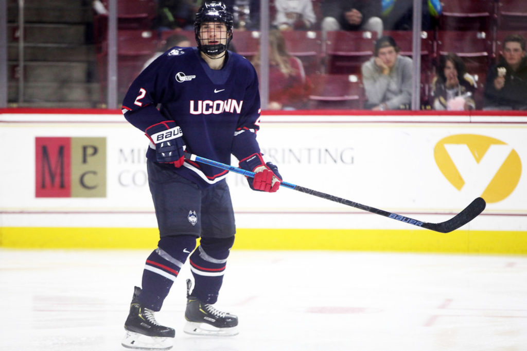 Russian-born, giant 6’4″ 215 lbs. defenseman Yan Kuznetsov(2) decides to leave a crazy 2nd year of only 16 NCAA games played with University Of Connecticut Huskies to sign his 3-year entry level contract with Calgary Flames.